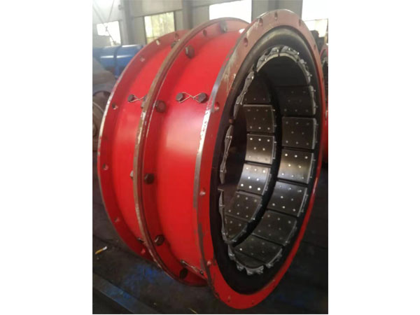 2、氣動離合器接合元件主要采用摩擦片、摩擦塊等。LT氣胎離合器由鋼圈、閘瓦、摩擦片、扭力桿、彈簧片、離合器氣胎組成。